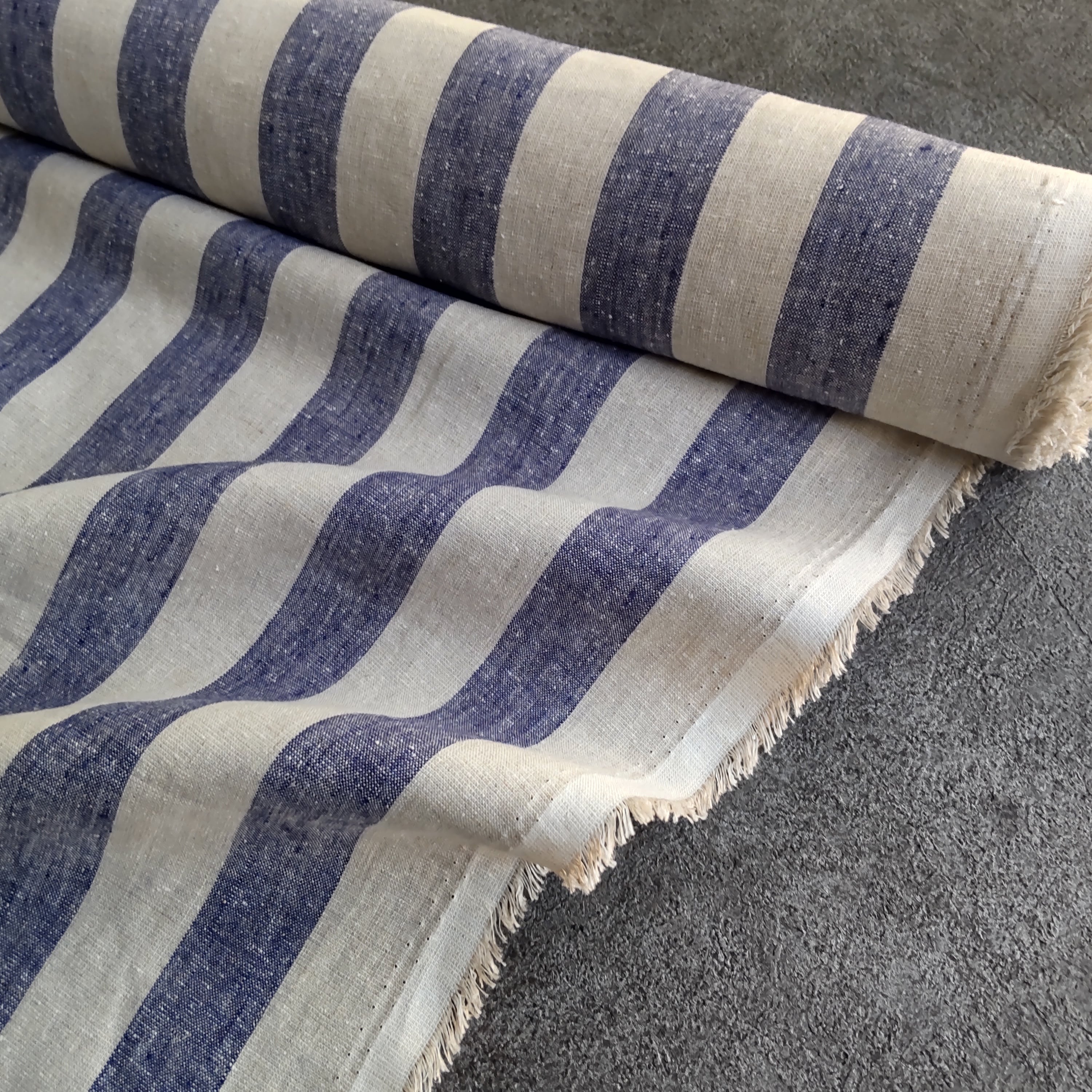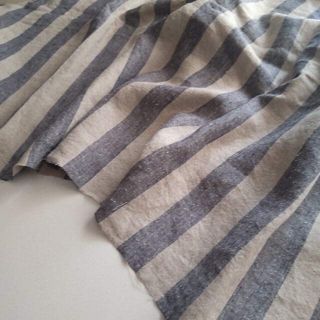 リネンとシルクを交織した、太ストライプ柄の生地です。