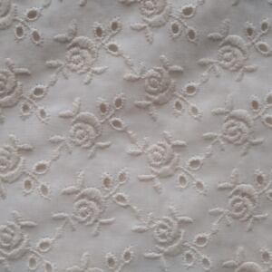 ふんわりとしたコットンローン生地に、アンティーク調の小さなバラ刺繍を贅沢に散りばめた刺繍レース生地です。