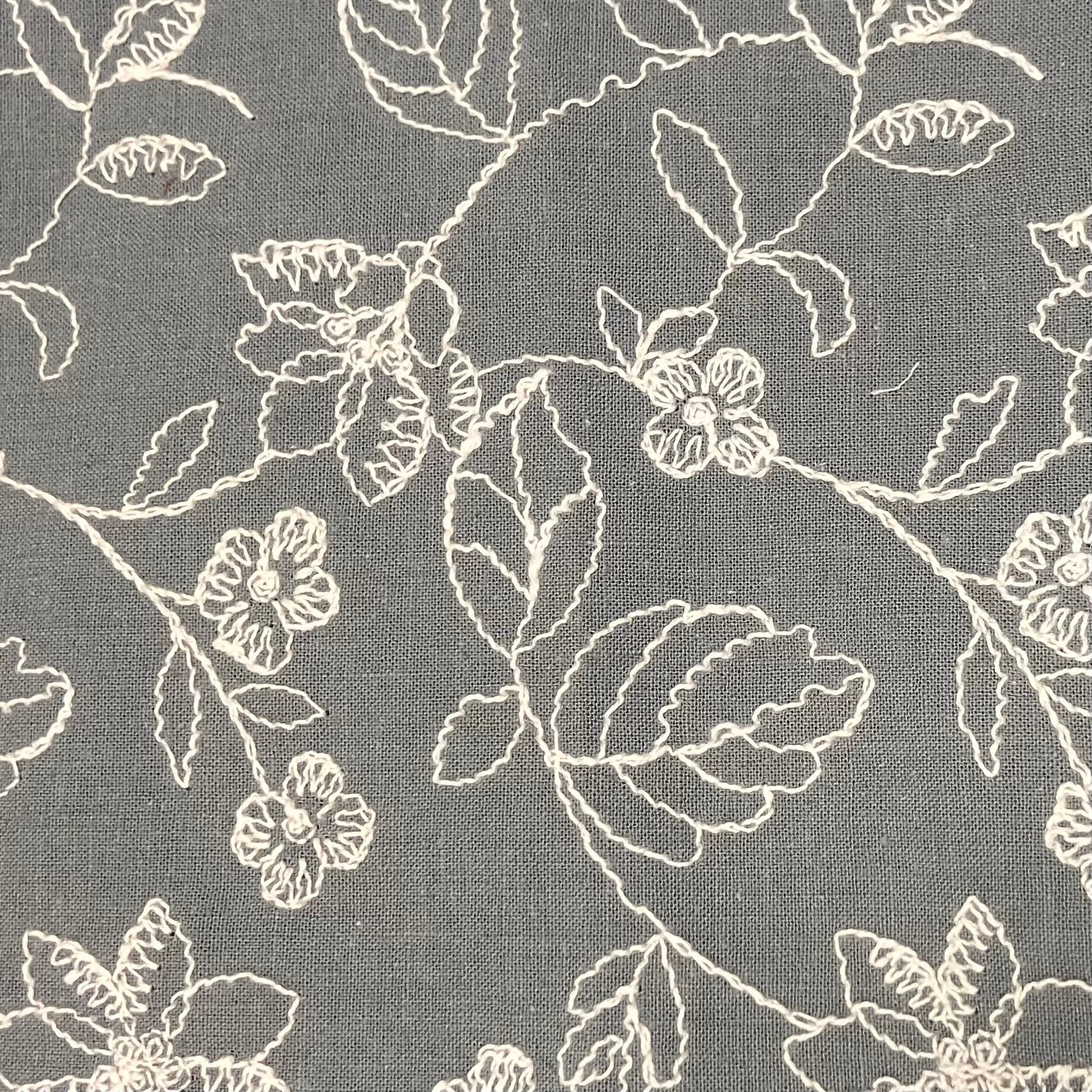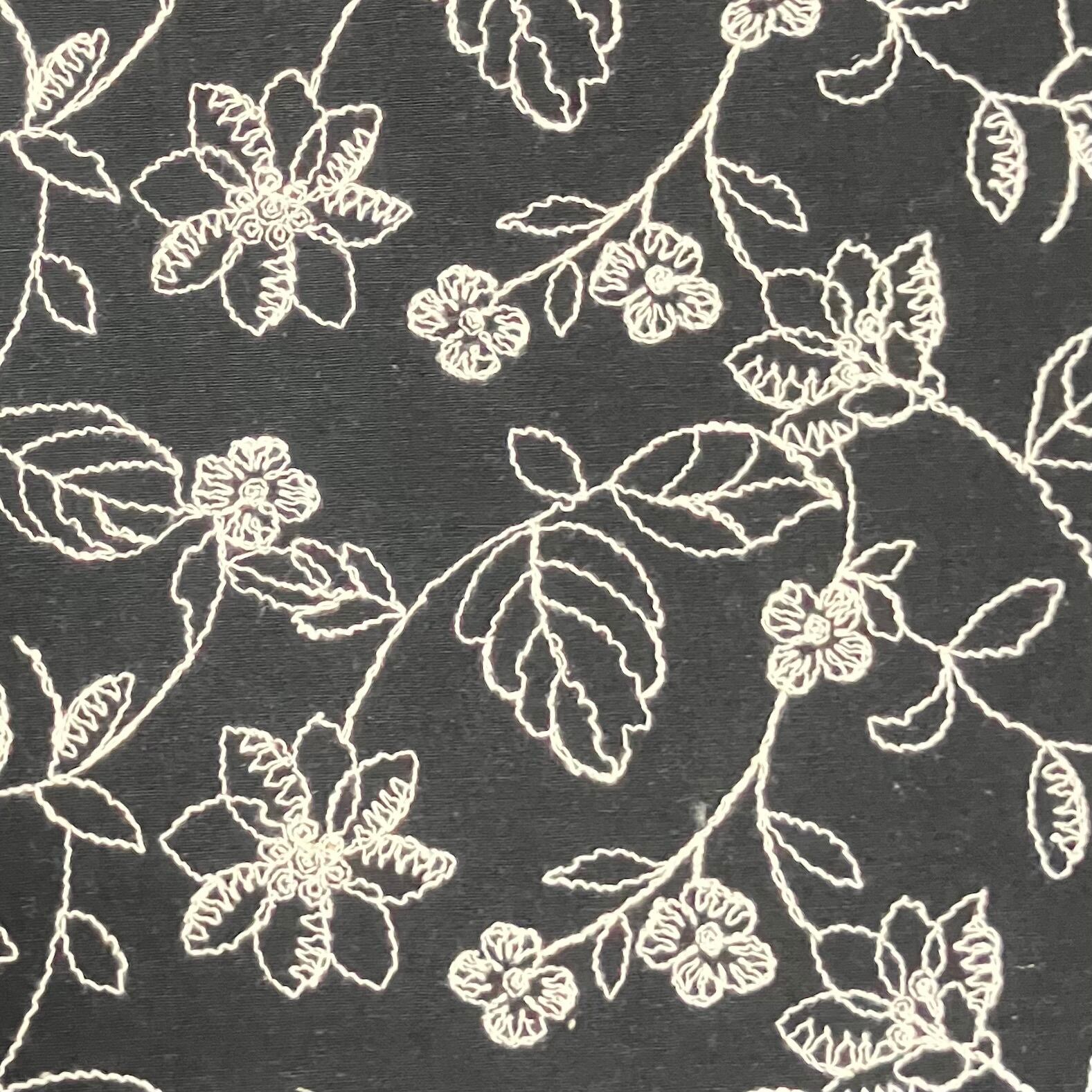 [綿麻刺繍]線描きフラワー コットンリネンエンブロイダリーレース 生地No.(BLG11212)