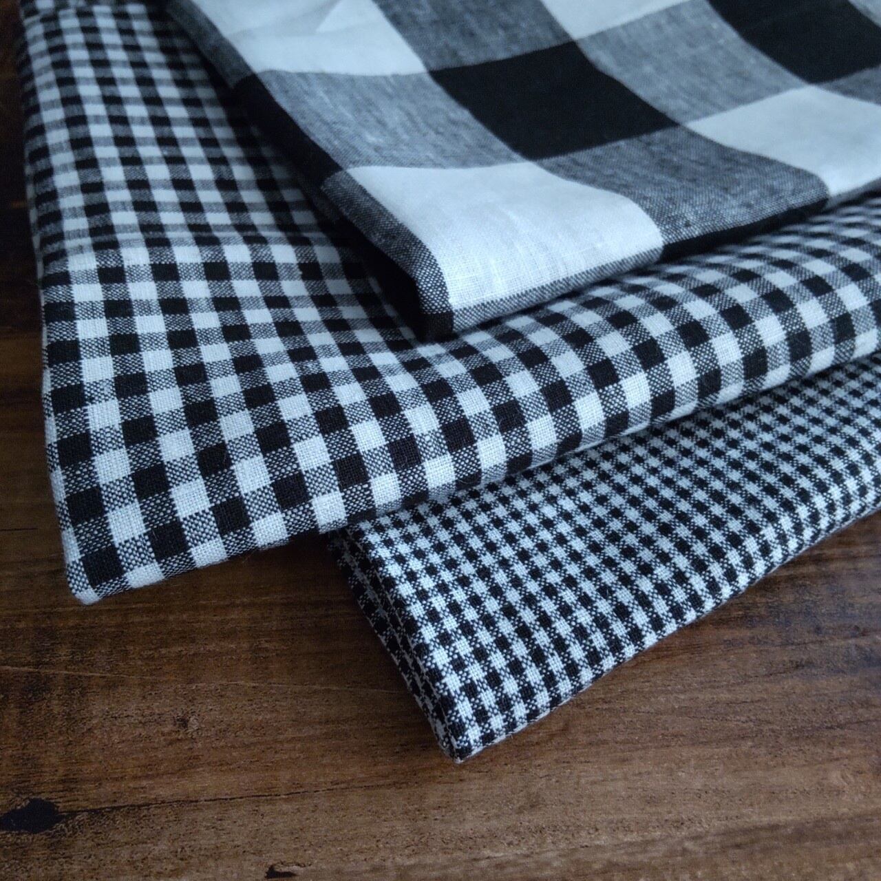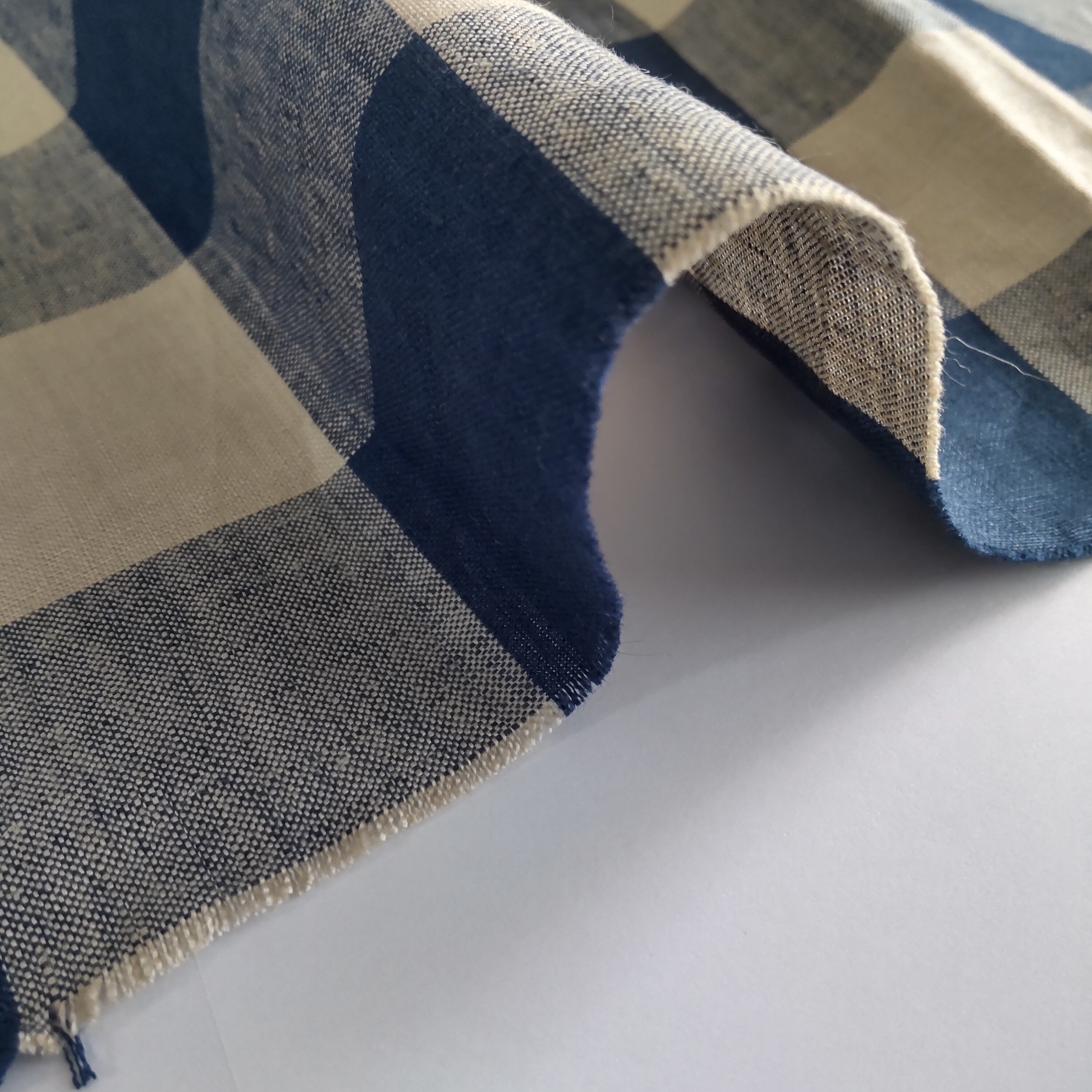 ブロックチェック 先染高密度リネン ファームタンブラー 生地No.(BLG043)