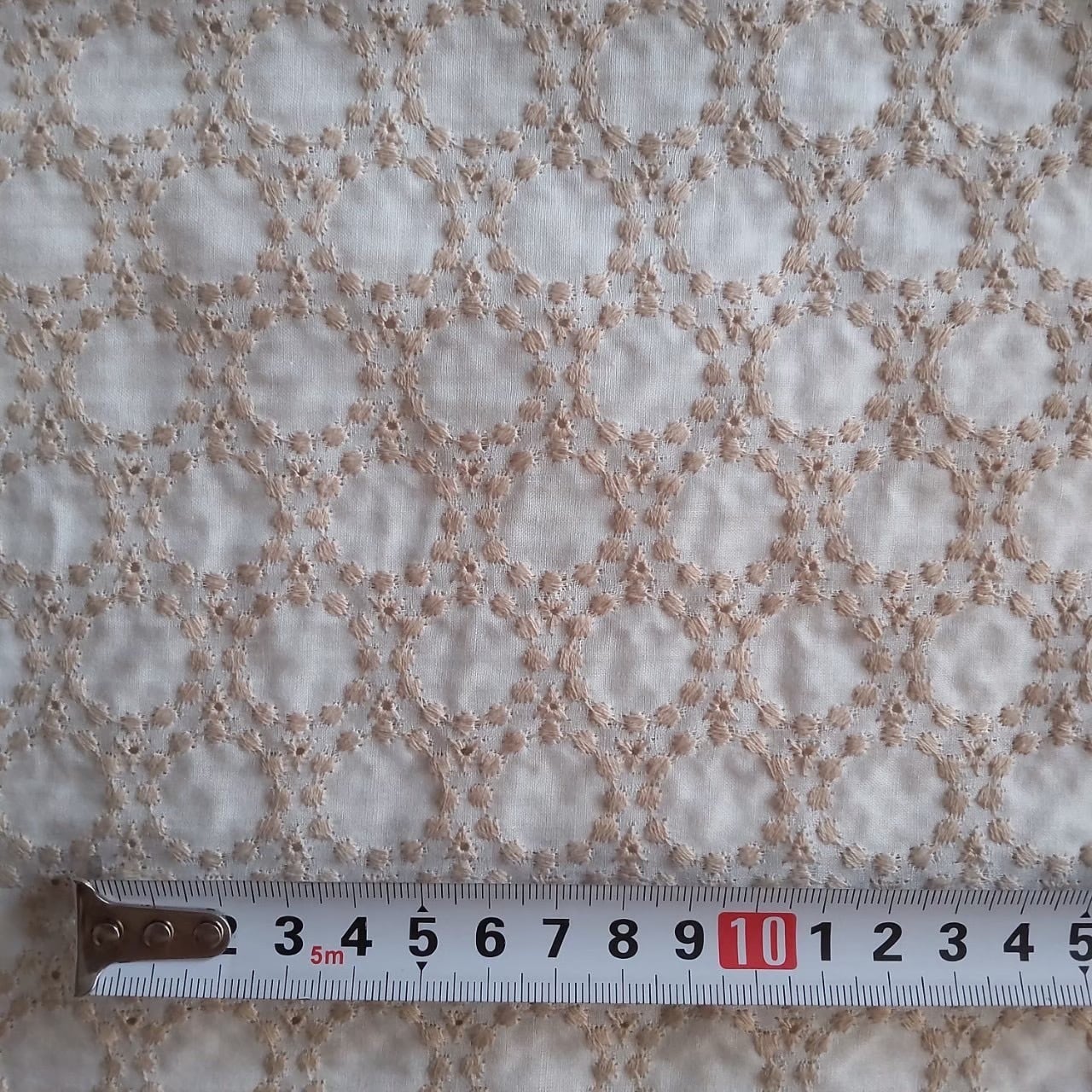 【 送料無料 】ドットサークル柄 北欧系 綿ローン エンブロイダリーレース 生地No.(BLG10377)