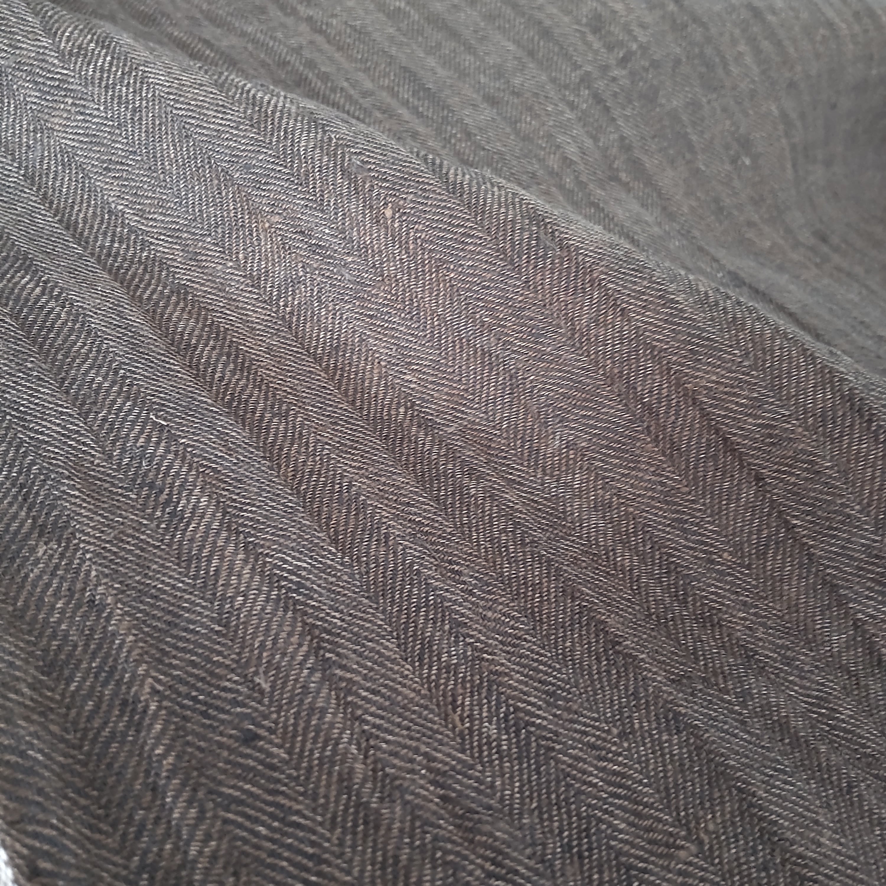 強撚糸を織り込んだ、リネン100%のヘリンボーン先染め生地です。