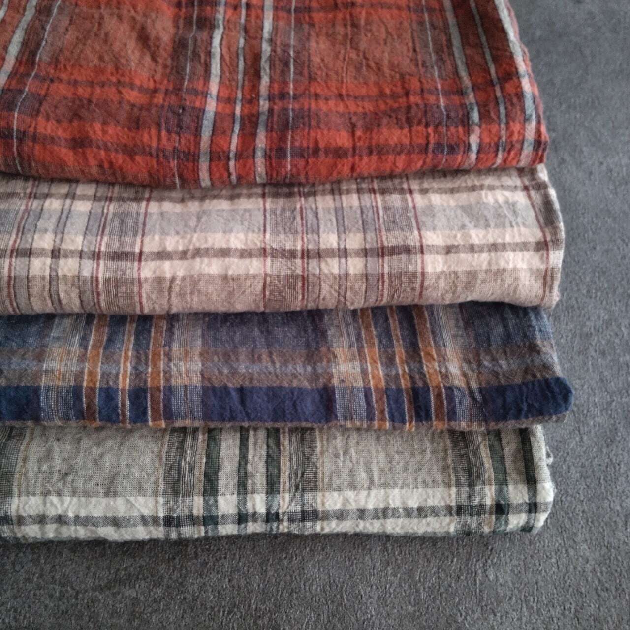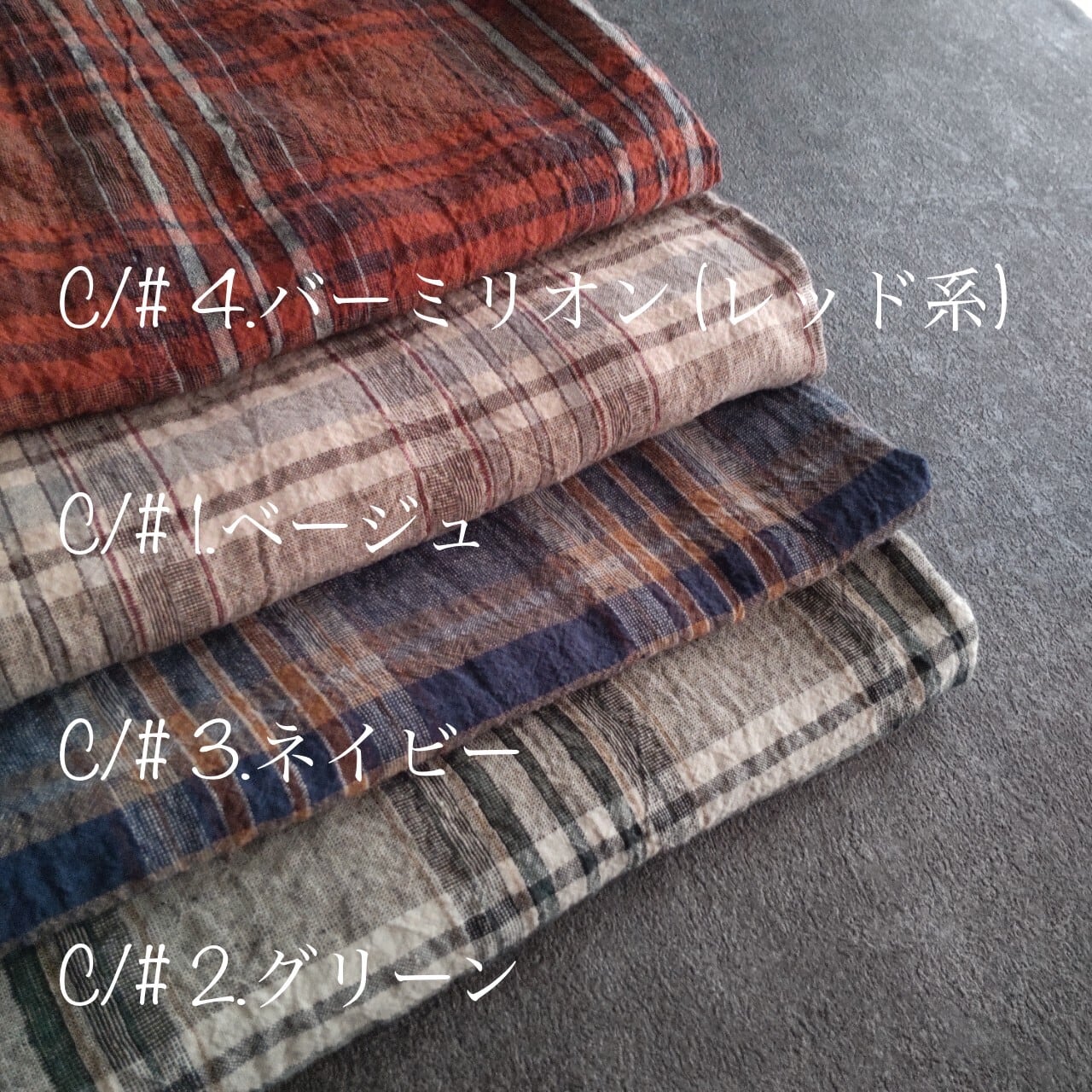 ・先染め生地の特性上、柄の大きさや並びに個体差が出る場合があります